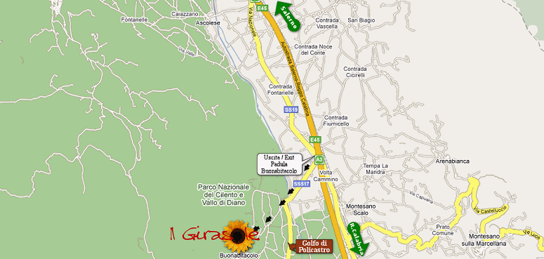 IN AUTO: - Dall´Autostrada del Sole A-3 Salerno / Reggio Calabria, uscite a Padula - Buonabitacolo, girare a destra e/o a sinistra (dipende se provenite rispettivamente da nord o da sud) e seguire le indicazione per Buonabitacolo percorrendo la Superstrada Cilentana (SS517 Var) per circa 500 metri. Proseguire, sempre diritto, per Via Nazionale e Via Sant´Antonio, fino ad arrivare in Via Roma dove troverete il nostro affittacamere.